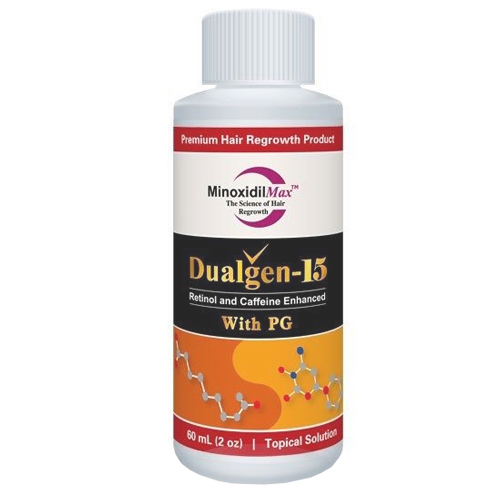 Миноксидил 15% (Dualgen) - препарат с самой высокой на сегодняшний день концентрацией действующего вещества. Как и 10% minoxidil, состав 15% концентрации усилен 5% азелаиновой кислотой. Дуалген 15% следует применять в тех случаях, когда облысение затронуло большую часть поверхности головы, также мужчины могут применять 15% minoxidil в тех случаях, когда более слабые концентрации не дали положительных результатов.